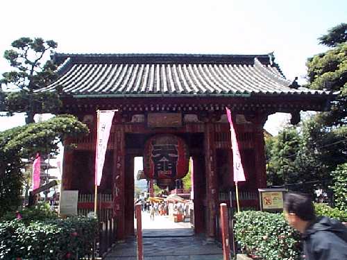 | 仲見世通りを過ぎると,伝宝院前の境内には,露天商が軒を並べている。 |