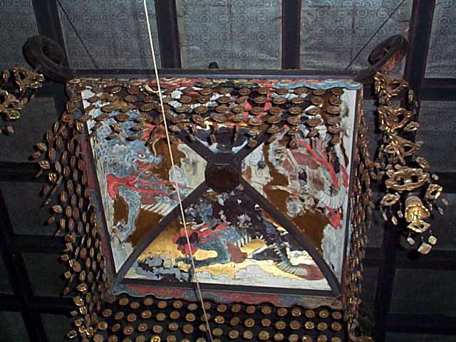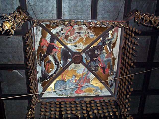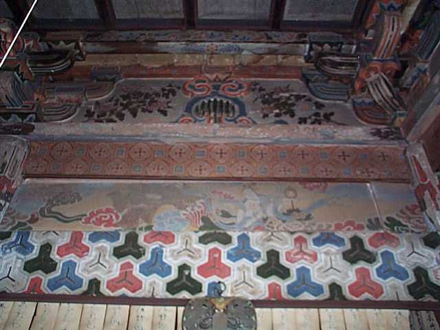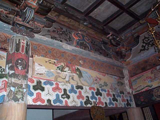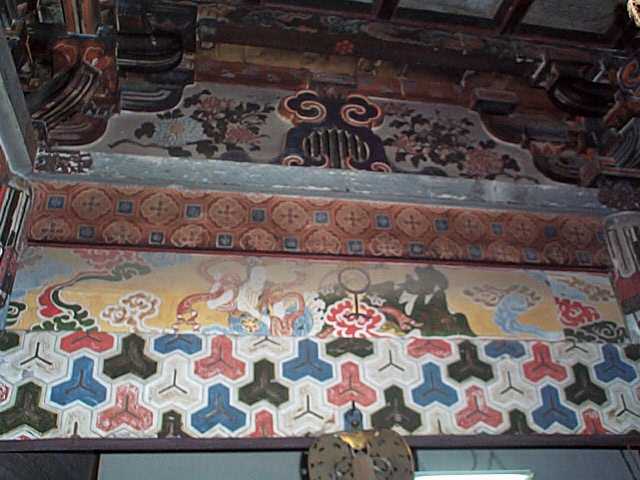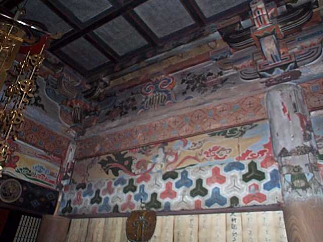 | 本堂内部の欄間絵は,500年の歳月を経ている。 |