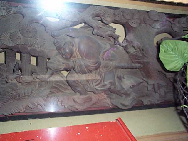 | 老人の左足に注目。 5本の足指が見える。 彫刻の裏面は,鯉の滝のぼり。 |
