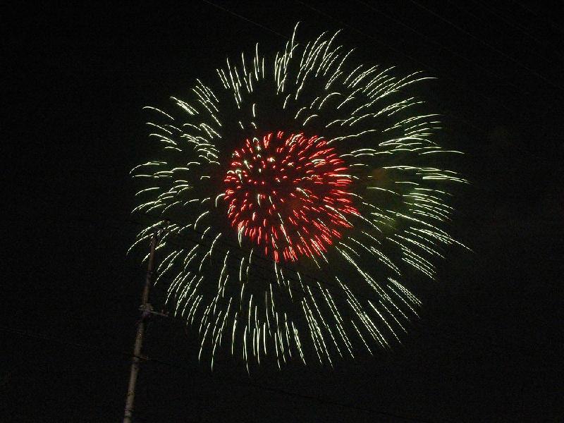 綾瀬(あやせ)の花火大会は、海や川のない内陸部なので、電柱が邪魔になる。