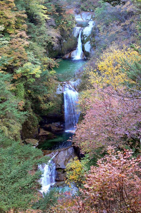 割け目の手前でも100メートルほど眼下に滝が2段見える。