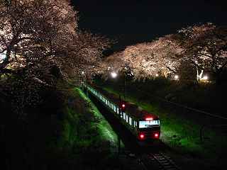 山北の桜並木と電車 昼景と夜景 左の写真をクリック |
