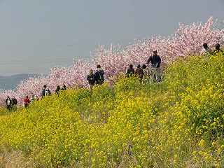 怒田丘陵の斜面・一の堰 に120本の桜の並木 左の写真をクリック |