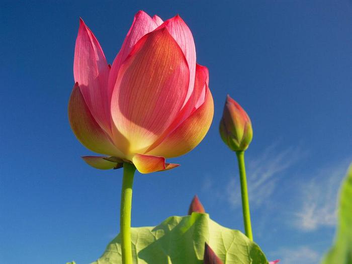風が強くて、多少の雲の流れもあったが、期待通りに富士山も見えたし、朝日を浴びてハスの花も生き生きとしていた。