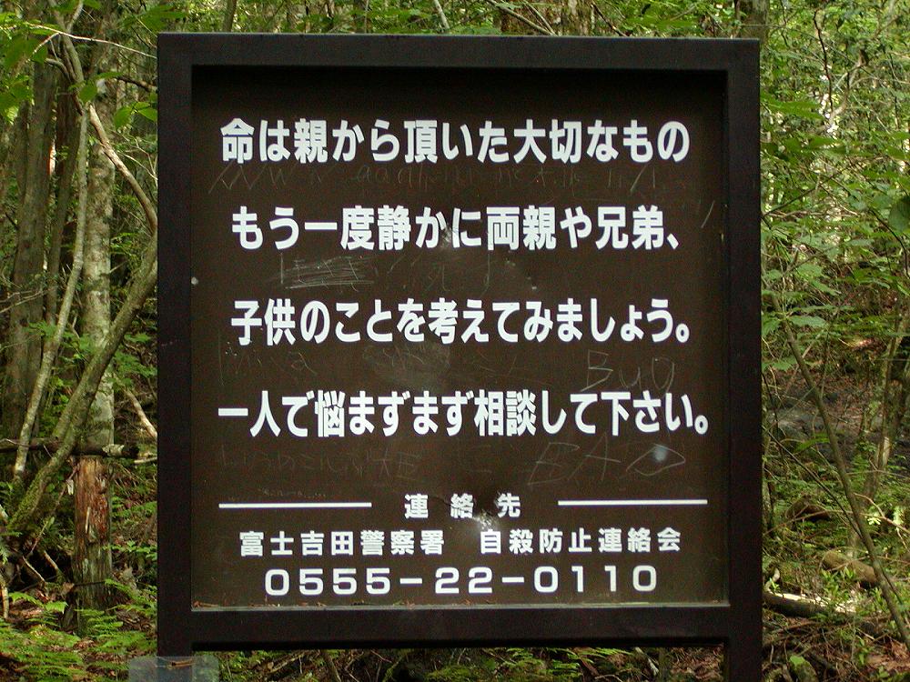 | 2004年5月22日、富士山の北麓を一人旅(ドライブ)する事にした。 まずは、大学二年の時、現在の妻との2回目のデートで行った事のある「白糸の滝」を目指した。 続いて、行ったのは、「富岳風穴」、地下10メートルあたりの横穴はまだ、寒かった。 そして、最後は、青木ヶ原樹海という『自殺の名所』、以前、樹海の入口あたりの遊歩道を歩いた事があるが、今回は、少し、樹海を見てみよう、運がよければ、自殺者をみてみようかな〜と、思った。 |
