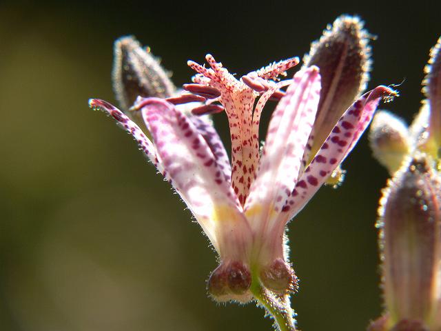 めしべとおしべの詳細 めしべは、花柱の上部が深く三裂して、さらに各々が二裂している めしべには、花粉が付着しやすいように、球状の突起物が有る おしべは、6本有り、それぞれの花糸が花粉袋をぶら下げている