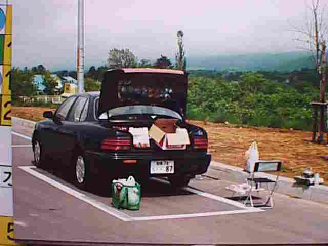 国道5号線の平野をしばらく走っているが飲食店が全く無く、途中で車を止めて非常食を出して、お昼を過ごした。