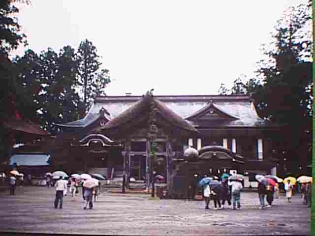 羽黒山の登山口から歩いて、国宝の「五重塔」の写真を撮ってから、また駐車場まで戻ってきて、今度は車で山頂まで車で登った。本殿には参拝客が大勢いた。