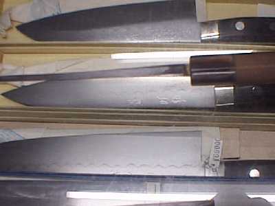| 研ぎに砥がれた包丁とか。 幅1センチだ! | 朝から晩まで,刃物砥ぎの人生だ。 |