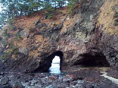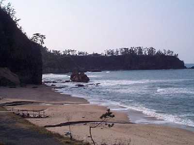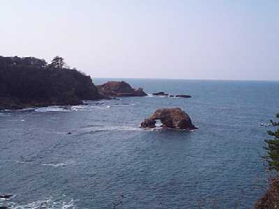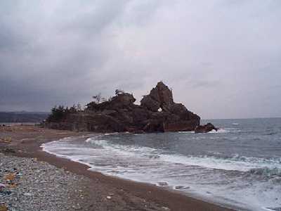 | 穴アキ岩と、関野鼻を望む | 泣き砂の浜へ降りる |