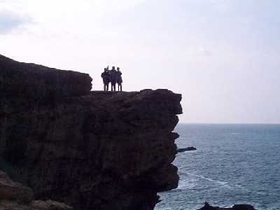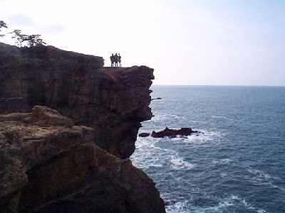 | 自殺の名所「ヤセの断崖」小説の舞台 | 海面35mの岩の上で、ヒビル3人 |