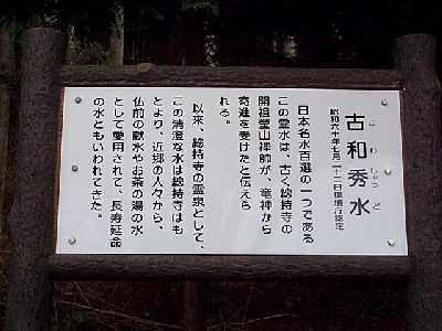 | 日本名水百選の「古和秀水」 | 総持寺から、ふたやま奥地にあった |