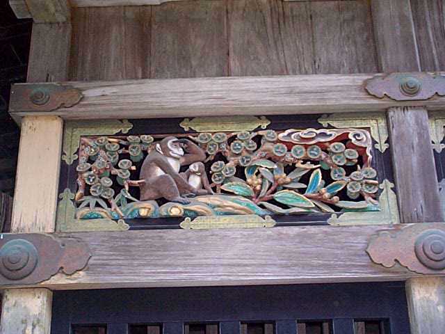 神厩舎(三猿の8枚の彫刻)、御水舎、唐銅鳥居、