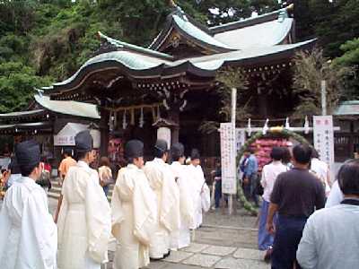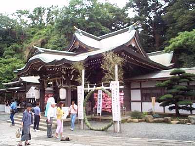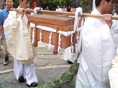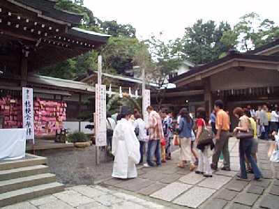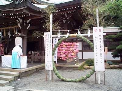 | 三回目は,茅の輪をくぐり,左手に回る。 | 茅の輪くぐりは3回で終り。 |