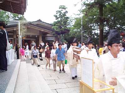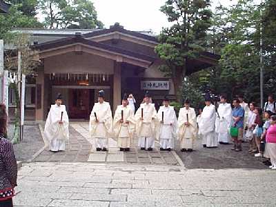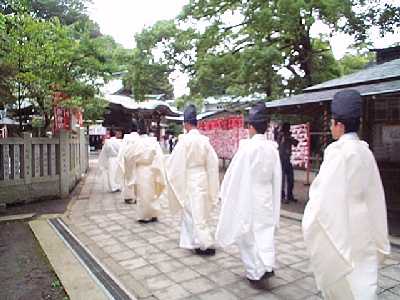 | 茅の輪くぐり会場へ移動 | 参加者も続く |