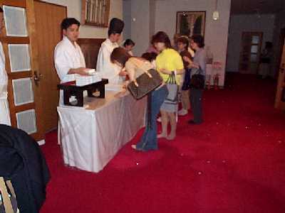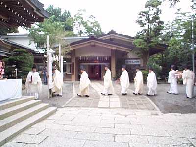 | お神酒を頂き,参拝者名簿を記入した。 参加者は,150人くらいいた。 |