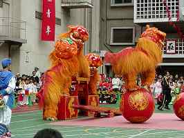 民族舞踊演技、中華街での祝賀パレード・獅子舞等盛大に開催される。