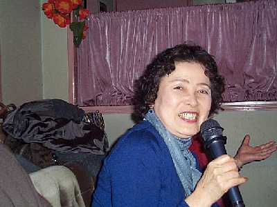 | もりくん、大きな口を開けなきゃぁーダメ。 | よーこ社長は、マイク持ちなれてねぇーや。 |