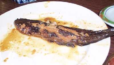 | 何やら、真剣な千恵ちゃん!! | 正体は、ゴンゼ(ゴンズイ)の味噌煮 |
