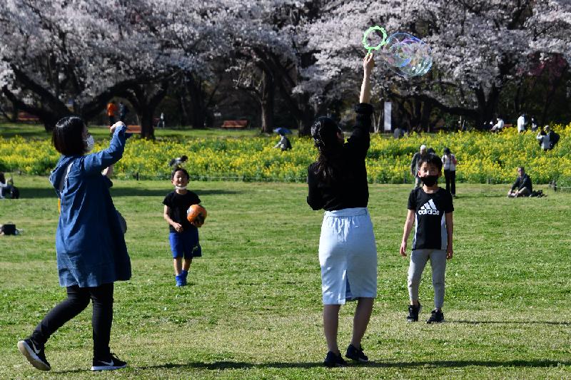 今年は桜の木の下に入れないように、ロープが張られて、レジャーシートを広げて飲食などは出来ないように、見張りもついていた。しかし、人々は思い思いの時を過している。
