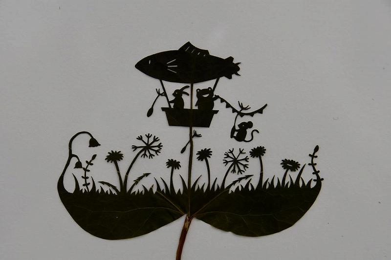 ガーデンネックレス横浜の特別企画として、葉っぱ切り絵アーティストのリトさん(35)=保土ケ谷区在住=による作品展が、山下公園レストハウスインフォメーションセンターで行われている。(5月8日まで)