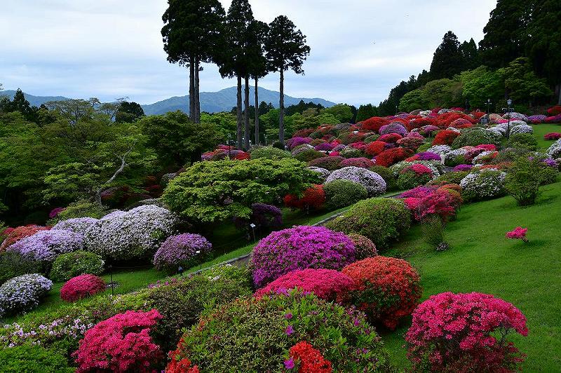 箱根芦ノ湖畔にある「小田急山のホテル」の「つつじ庭園」では、江戸時代に作出された30の古品種を含む84種類3000株のツツジが見頃を迎えている。