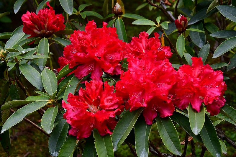 シャクナゲ園は、つつじ庭園の奥に、木々に囲まれた山の斜面に自然界に生えているように植えられており、枝も伸び放題になっていた。