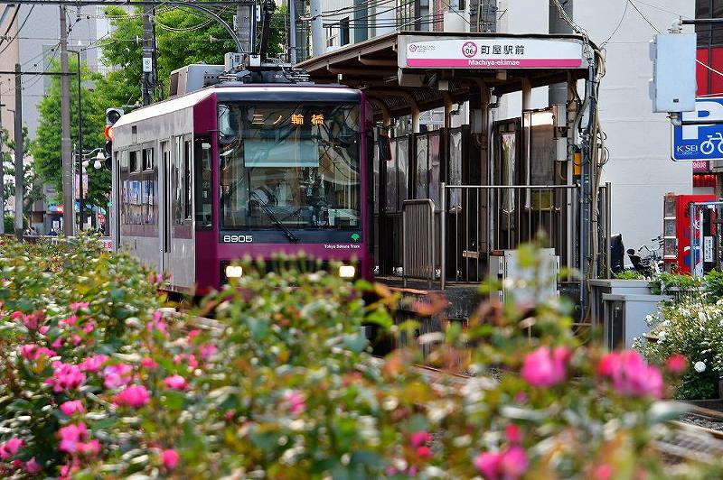そのような経緯があるので、荒川区に電車が入ると、色鮮やかなたくさんのバラが咲く「荒川遊園地前停留場」から「荒川車庫前停留場」までの区間や、「町屋駅前停留場」、「三ノ輪橋停留場」の周辺がおすすめスポットであるとネットで盛り上がっていた。とは、言え、「都電荒川線のバラの撮影は初めてなのだ」。