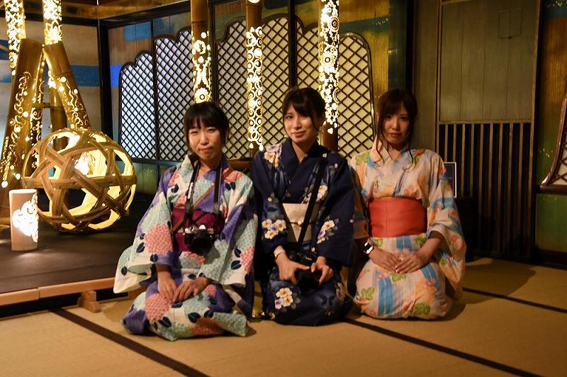 山口県の「柳井金魚ちょうちん」のあかりがゲストをお出迎えです。 よく見ると、もう何かに取り憑かれている金魚が……。