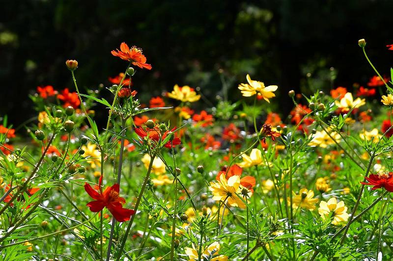 1500平方メートルの敷地に植えられたコスモスはドワーフイエロー、ディアボロの2種類で、毎年7月ごろ咲き始め、8月から9月にピークを迎える。