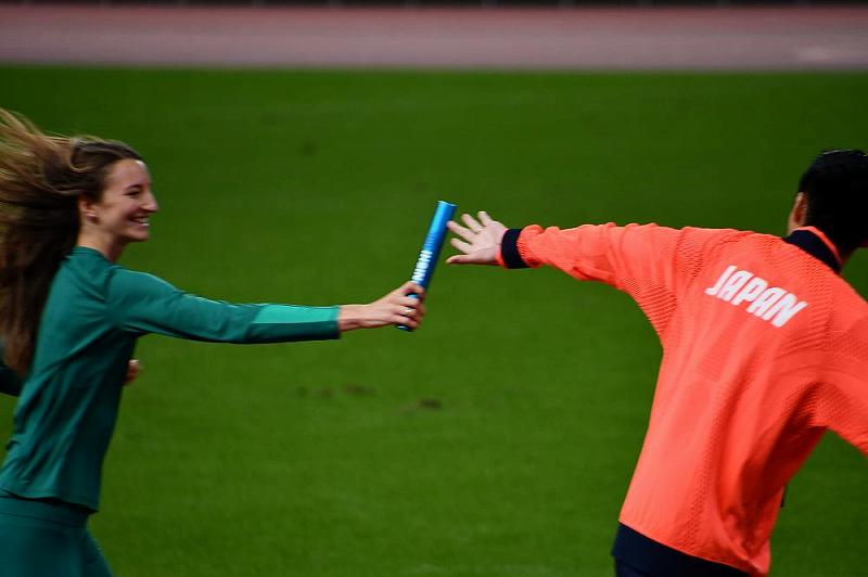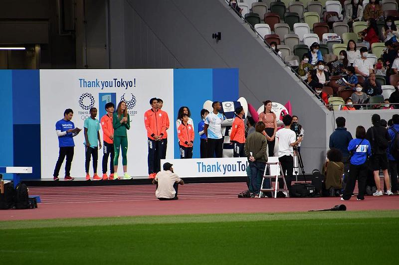 次のイベントは、会場内の400メートルトラックを使用し、東京2020で活躍した「陸上陣のオリンピアンによる障害物リレー」を行った。