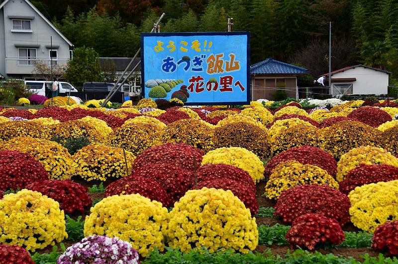 厚木駅前のバス停から、30分ほどバスに乗り「飯山観音前」で下車する。 徒歩2分で「ざる菊」会場に着く。