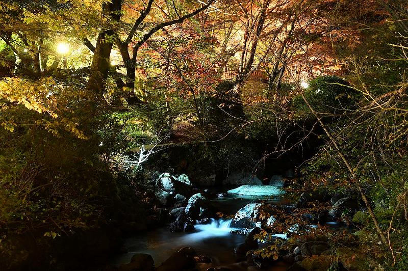 もみじの枯葉がだいぶあったが、ライトアップでは枯葉も普通のもみじも同じ様に光に反応するので、写真写りに支障は無かった。