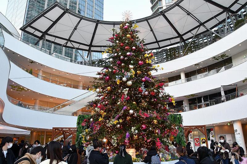 JR横浜駅を東口に向かい、そごうデパート内を通りぬけ北側にある商業施設「横浜ベイクォーター」でクリスマスツリーが飾ってある。