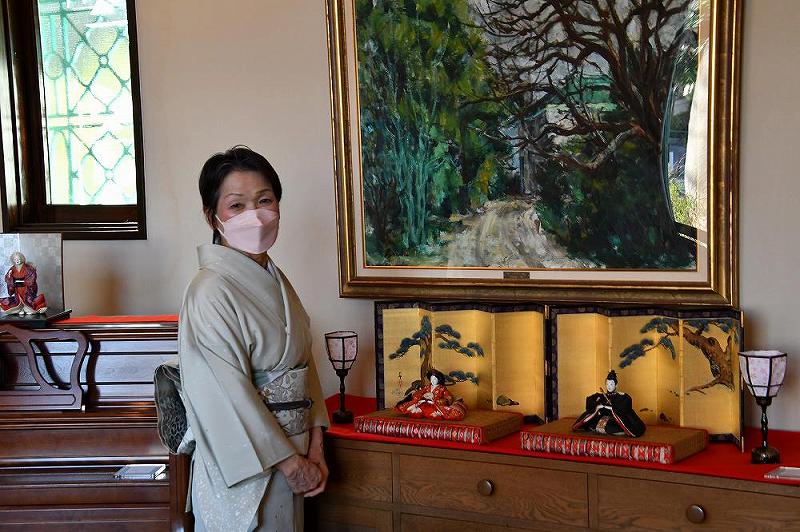 また、暖炉のある居間には、お内裏様やお雛さまが飾られ、「お抹茶のセット」が並んでいました。