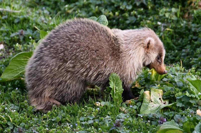 慈恩寺の背後は、山深い場所なので、町中では、お目にかかれない動物に出会います。 夕刻の食事タイムになったのか、狸より体が二回り大きな害獣「むじな(アナグマ)」があらわれ、野菜の根元の部分をかじりはじめました。 近くに大根があったので、投げましたが、慣れているのか逃げませんでした。 |