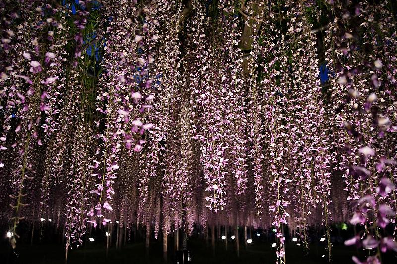 期間中は園内全体をライトアップして幻想的な「夜の藤」を演出します。