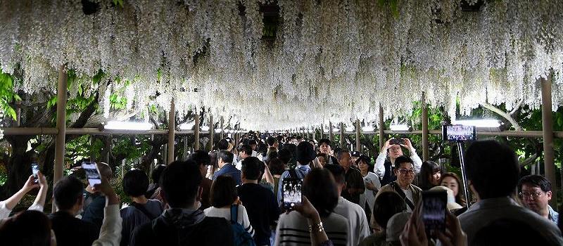 もう一つ、紫の大藤と人気を二分する「白藤のトンネル」が有る。