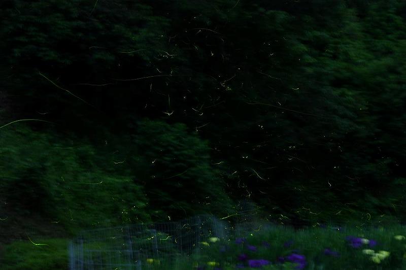 山際を手前から奥まで一望できたが、なにぶん、出っ張った木の枝で見えるホタルに制限があった。 |