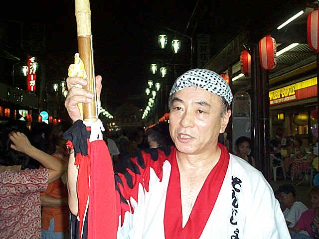 集めた下記の五人「今年が初参加の『そんじょ連』だった。」 一つの連は数十人から、数百人の構成で、鳴り物も付いているが、 この五人には、他の連が助けていた。 踊りは、超一流だった。 (左1枚目は、創立時の村上連長です)