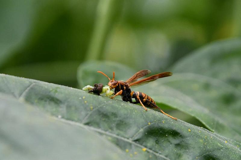 今回は、あしなが蜂が青虫を捕食しているめずらしい写真をゲットしました。 |