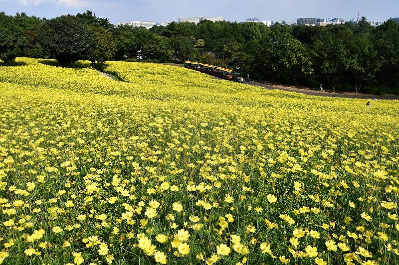 国営昭和記念公園の花の丘には、400万本のキバナコスモスが満開でした。