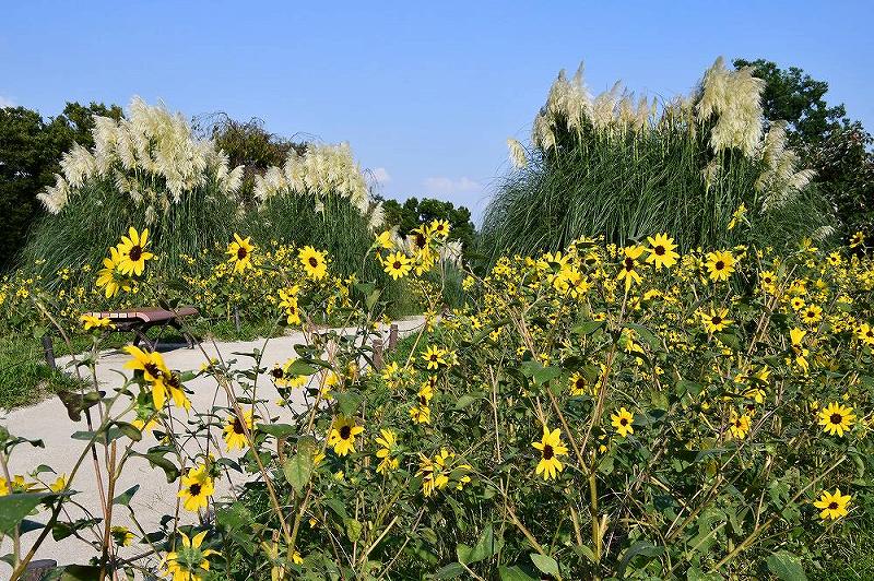 今の季節(9月)は、ススキの親分の「パンパスグラス」が見ごろを迎えていました。