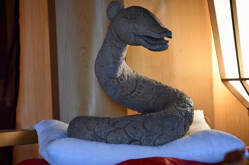 なお、八臂弁財天の冠の中には「宇賀神」(老爺の顔にヘビの体を持つ)が隠れているが、ヘビ年の今年に、その宇賀神の写真が公開されるそうです。 |