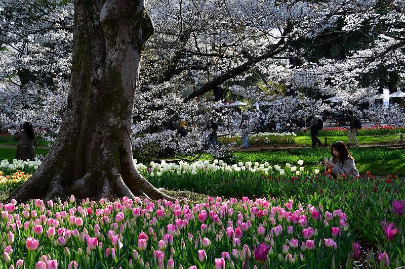 昨日(4/8)は、神奈川県秦野市のチューリップの名所を見に行き、見ごろの写真を撮れたので、そろそろ、立川の昭和記念公園を訪ねてみました。 しかし、四月に入ってから寒い日が続いたためか、242品種22万球のチューリップにはバラツキがあり、やっと五分程度の咲きぐあいでした。
