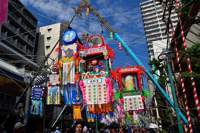 そして、七夕まつりは、平塚駅から「七夕飾りエリア」から「イベントエリア」、そして「露店エリア」と拡大しており、とくに、イベントとしては、7月4日の七夕おどり千人パレード、5日にはマーチングバンド、ダンスチームやフラダンスやよさこいチームの演舞、6日には、姉妹都市の花巻市や富山市や伊豆市などの郷土芸能がありました。私は、猛暑で顔から噴出す汗をタオルで拭きながら、とりあえず、毎年、撮影している大型竹飾りを写真撮影して、この後、今年初めての「横浜七夕」の取材に行きました。 |