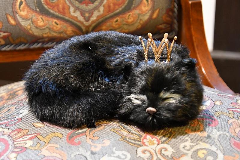 そして、王冠を頭に載せて眠っている猫がいました。 ずうーっと動かなかったです。