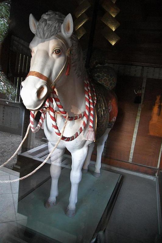 今年の干支は「午年(うまどし)」、ネットで調べると、寒川神社には「白猿に曳かれた神馬」がいるそうだ。