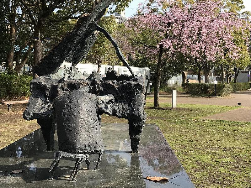 海老名市文化会館の庭には、中垣克久氏の「武満 徹"雨の樹 素描 II"に寄す」の作品があります。