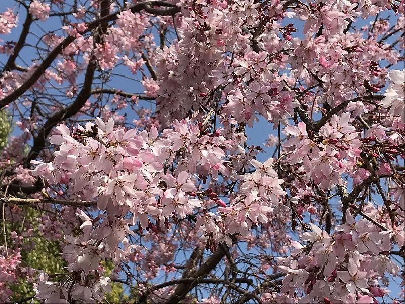 今の季節は、ちょうどシダレザクラが満開なので、演奏者の背後からシダレザクラとコラボさせて撮影しました。